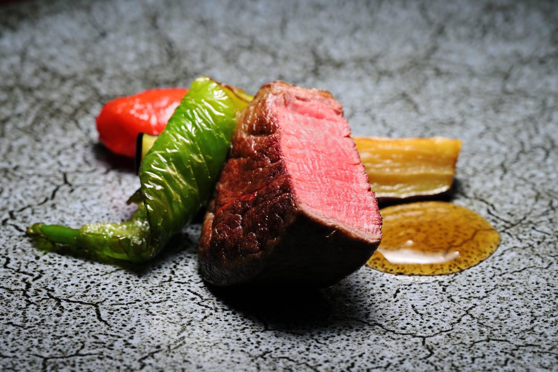 肉料理/黒毛和牛炭焼き 鼈甲餡 賀茂なすと伏見唐辛子