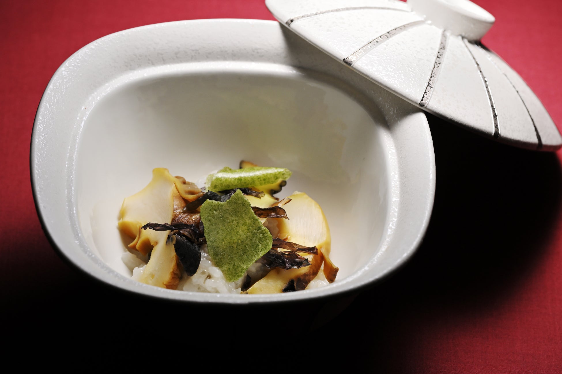 肉料理/ 黒毛和牛炭焼き 鼈甲餡 賀茂なすと伏見唐辛子 飯物/栄螺と海苔のリゾット