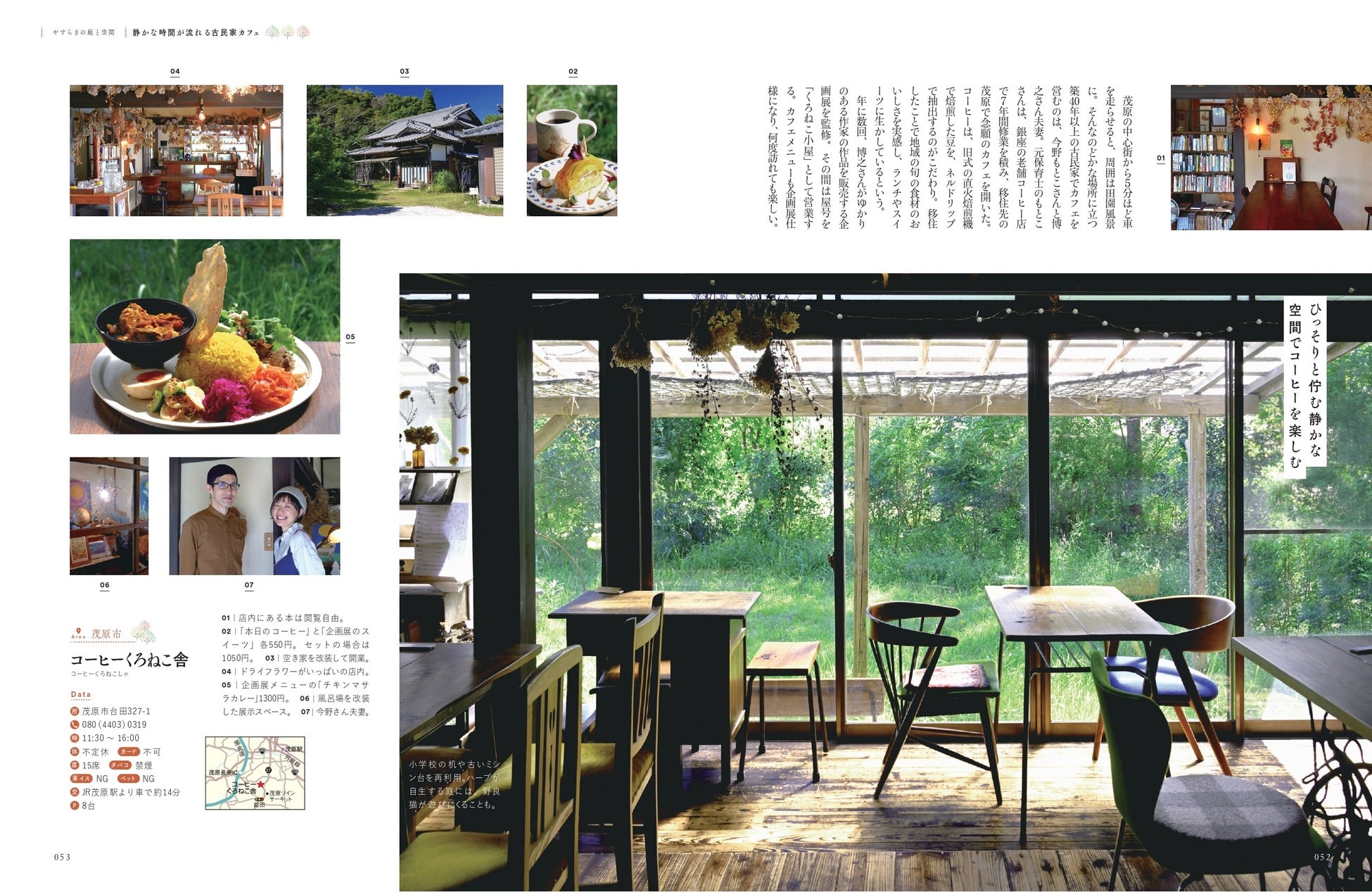 物語の世界に誘われて/アートとともに楽しむ一杯/禅僧が手がけるアフタヌーンティーサロン/緑の公園カフェ/かわいい雑貨とおいしいもの/地元の恵みに舌鼓/ほっこりSELECTION/INDEX/読者アンケート&プレゼント
