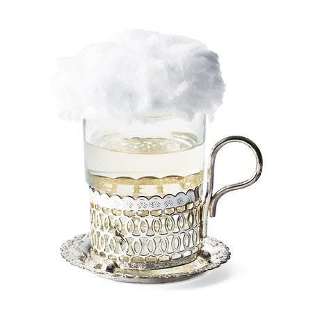 秋の綺麗な空に浮かぶ雲を彷彿とさせる白い綿あめを、冷やしたお茶を入れたカップのふちにかぶせるように乗せて。