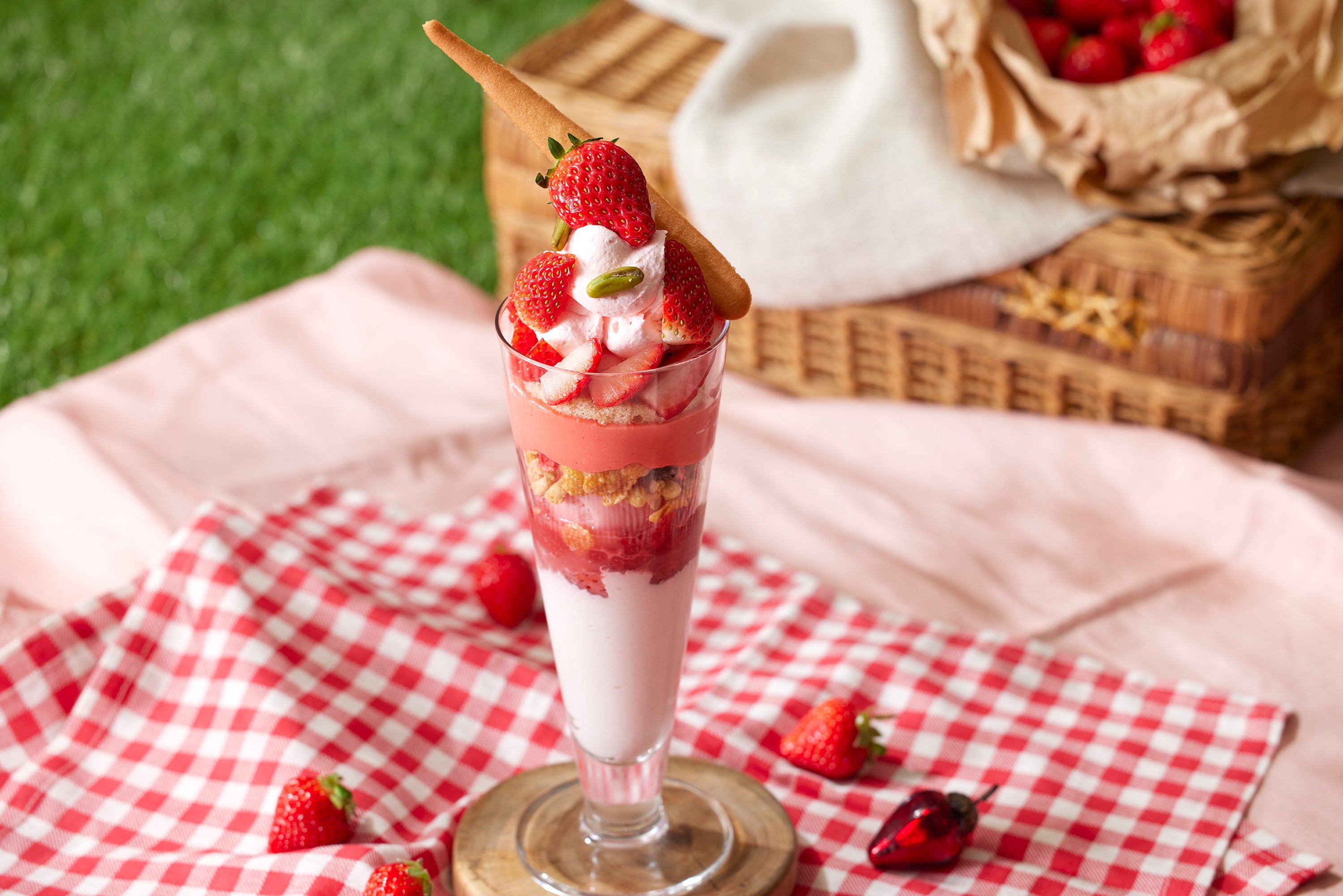 アフタヌーンティーセットと時期を同じくして、いちご×レッドをテーマとしたパフェが期間限定で登場します。いちごアイスやいちごのパンナコッタ、いちごゼリーを重ね、トップにはフレッシュないちごを贅沢に敷き詰めました。多様にアレンジしたいちごの味わいをお楽しみいただける、いちご尽くしのご褒美パフェです。