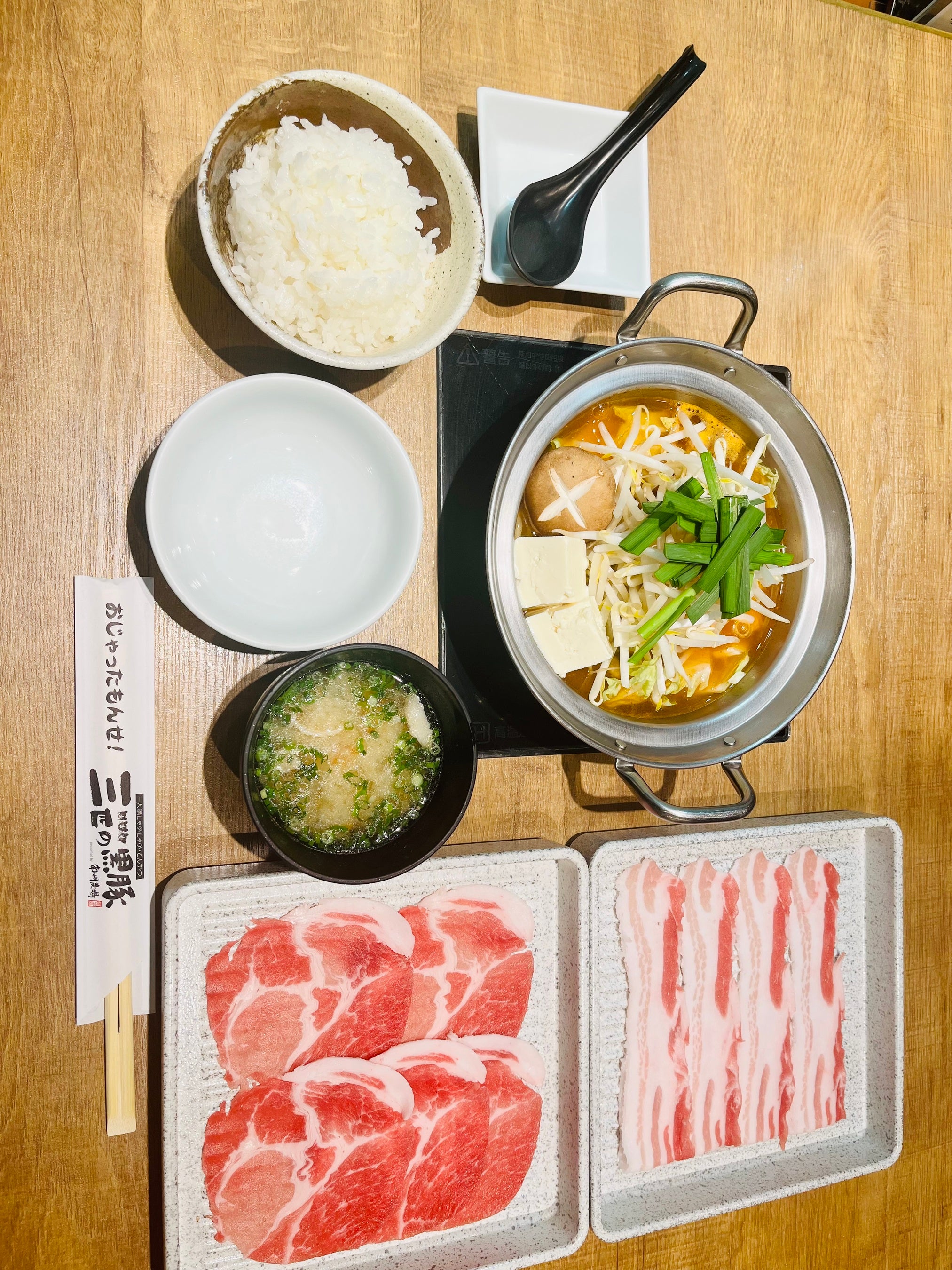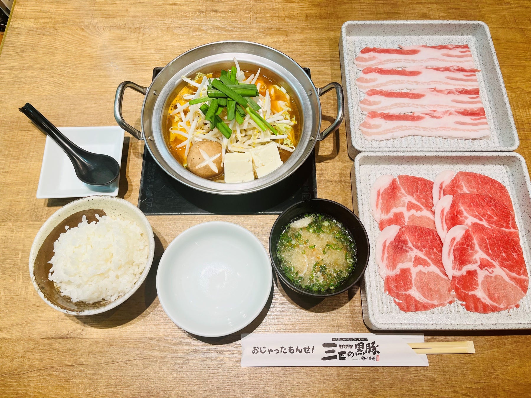 黒豚辛しゃぶバラ肩ロース肉定食セット
