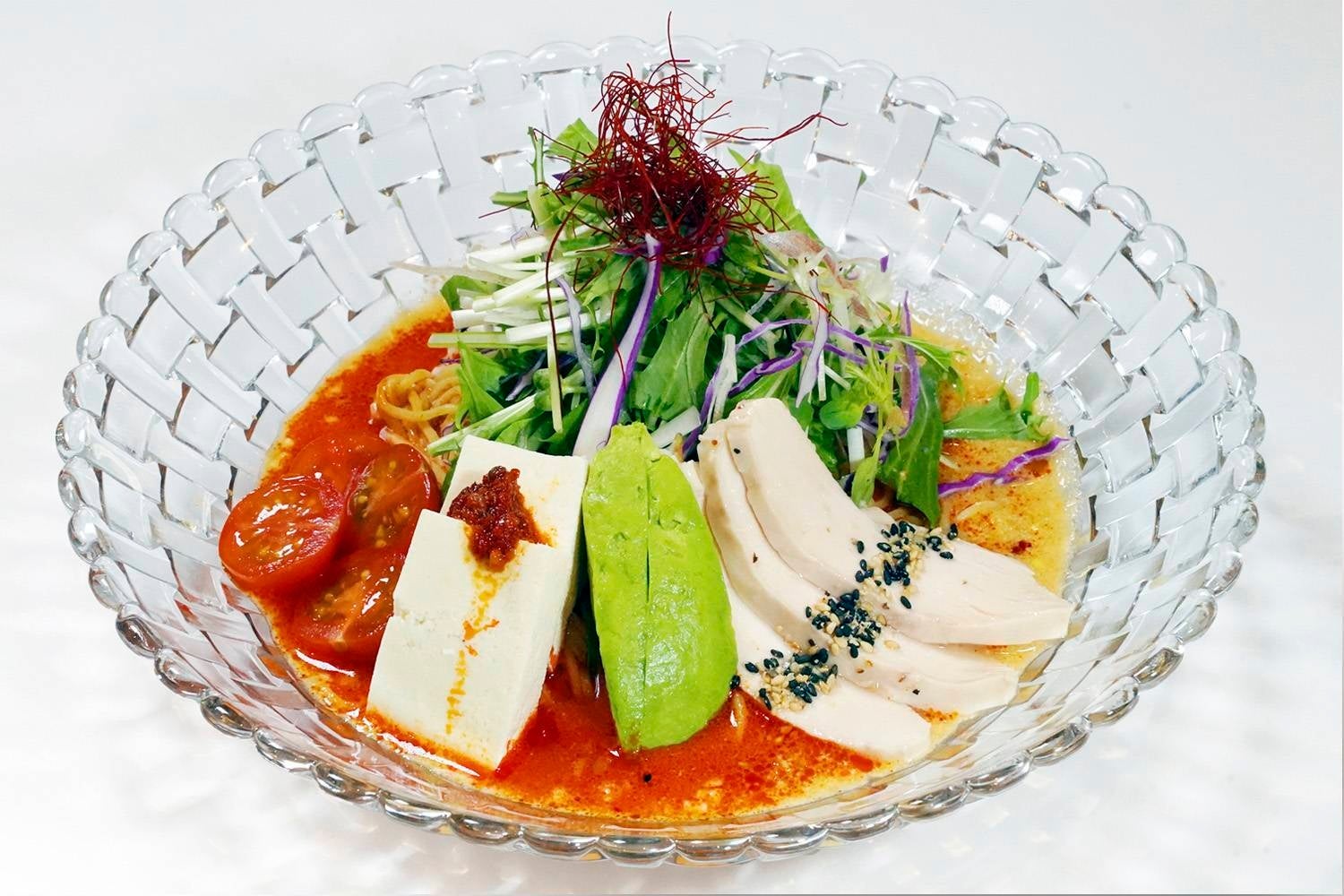豆乳ベースのまろやかなスープと野菜のバランスが取れたオリジナルの冷麺です。