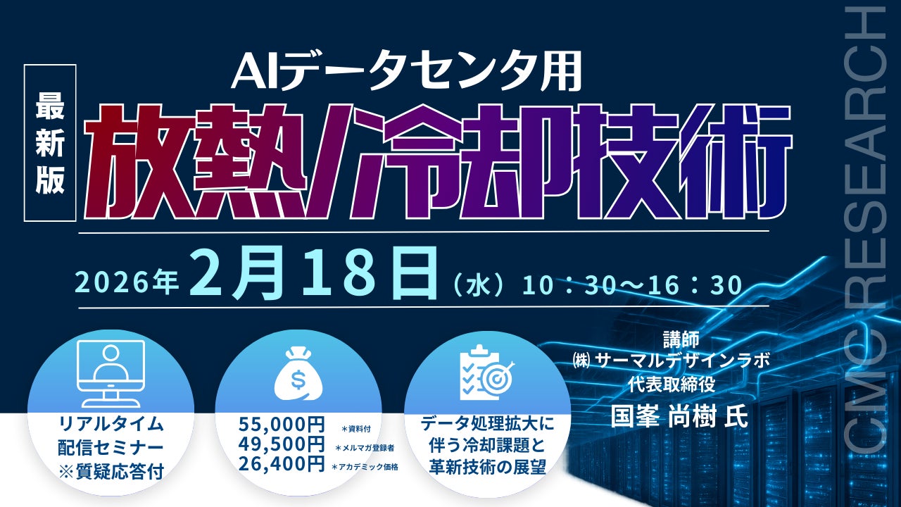 【ライブ配信/ZOOM】「AIデータセンタ用放熱/冷却技術」セミナー開催!2月18日(水)主催:(株)シーエムシー・リサーチ