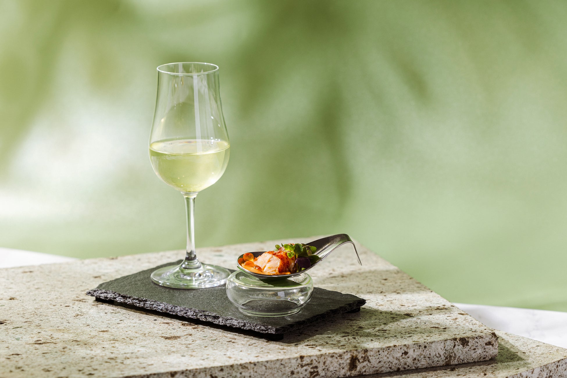 ●真鯛のお茶しゃぶ 茶葉とかつお出汁のジュレ ×冷たい玉露「麟鳳」