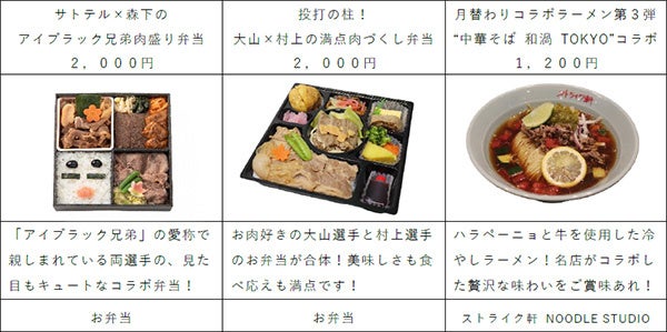 ※「サトテル×森下のアイブラック兄弟肉盛り弁当」「投打の柱!大山×村上の満点肉づくし弁当」につきましては、お弁当事前予約およびアクリルキーホルダー進呈対象外となります。