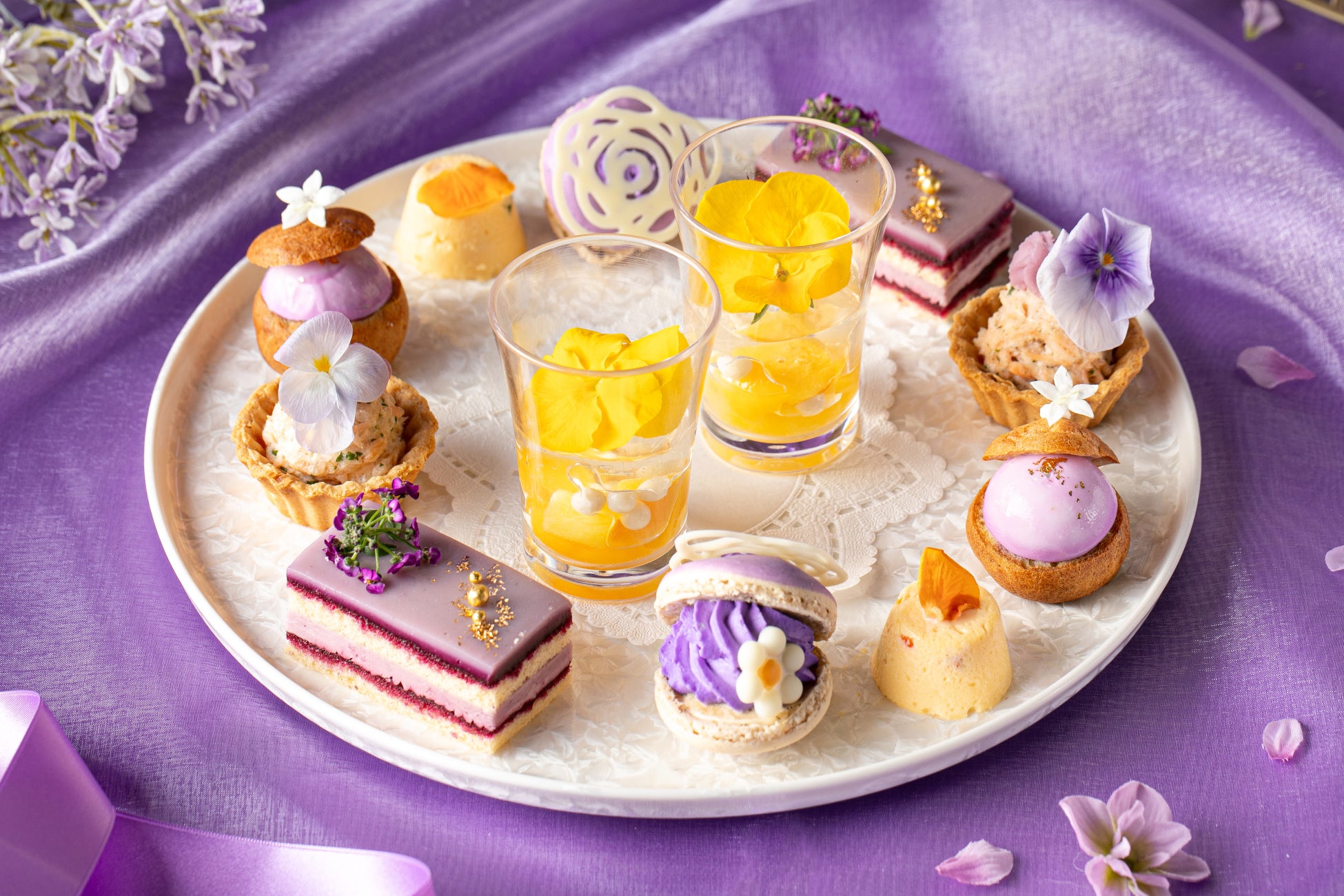 今回は“パープル・ラベンダー”を基調に、各メニューに花の彩りと香りを散りばめて、まるでお花畑に足を踏み入れたようなアフタヌーンティーセットをご用意いたしました。