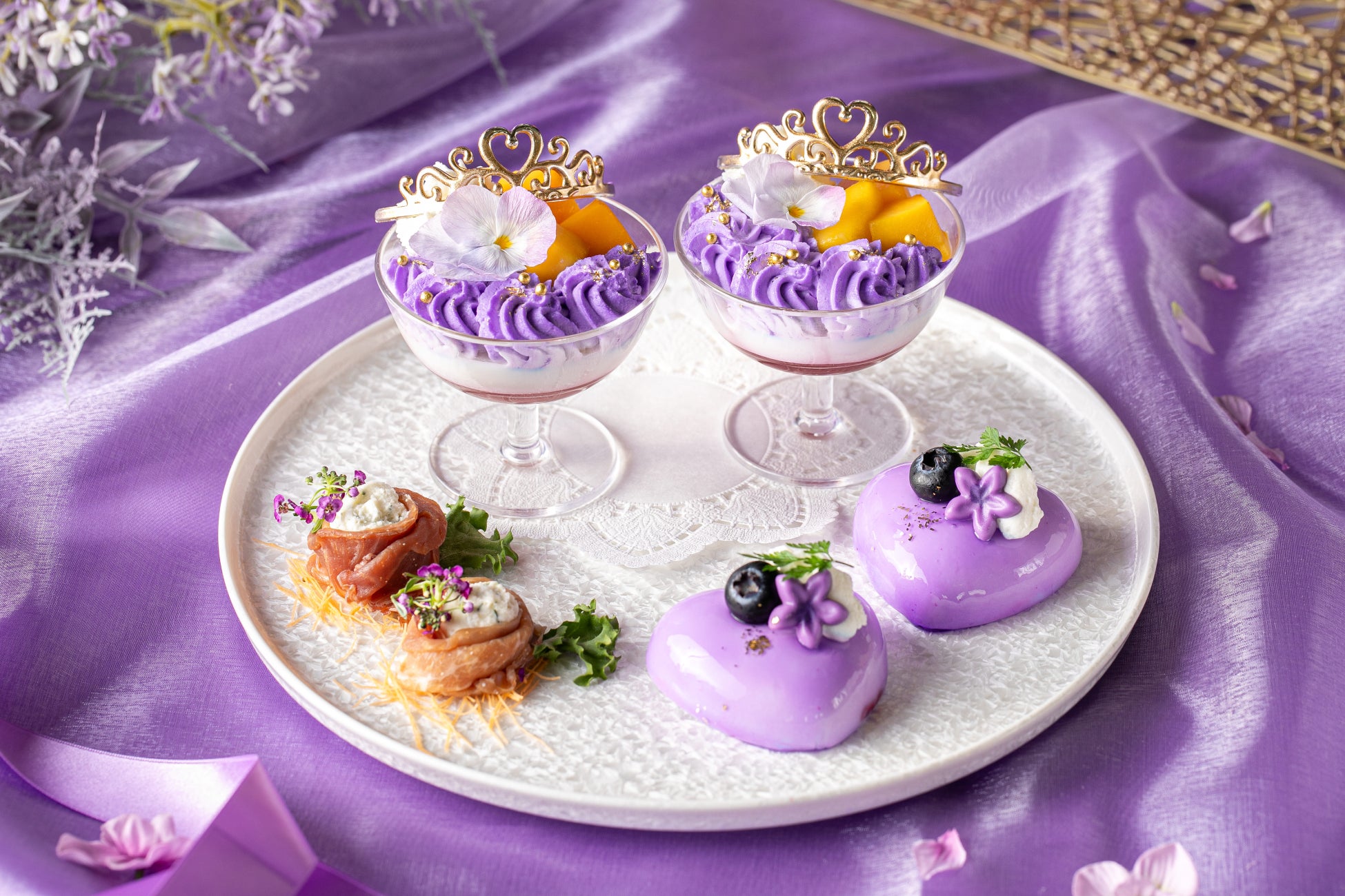 パープルとラベンダーカラーで彩られた華やかなスイーツには、エルダーフラワーやラベンダー、ハスカップやブルーベリーを使用し夏らしく爽やかな風味のスイーツをお召しあがりいただけます。