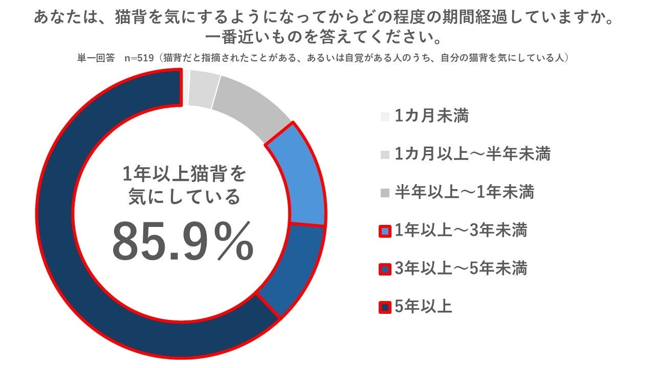さらに、猫背を気にしている人のうち85.9%が1年以上気にしている。