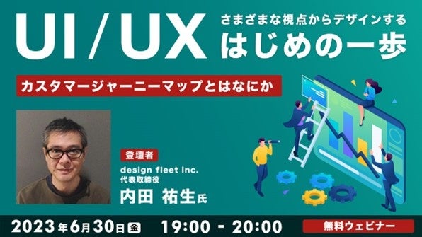 講師を務めるのは、デザイン教育・IT教育を専門に活動するdesign fleet inc.の内田祐生氏です。本セミナーでは、内田氏に、UI/UXのおさらいとともに、カスタマージャーニーマップとはなにか、なぜ必要なのか、また、作成した後の活用方法などについてもわかりやすくご説明いただきます。UI/UXデザイナーにシフトしていきたい方やUI/UXをきちんと意識してWebサイトを制作したい方などに特におすすめの内容です。