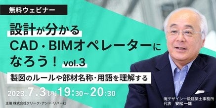 7/3(月)AIに代替されない建築設計が分かるCAD・BIMオペレーターにスキルアップ!「製図のルールや部材名称・用語を理解する」無料オンラインセミナー開催