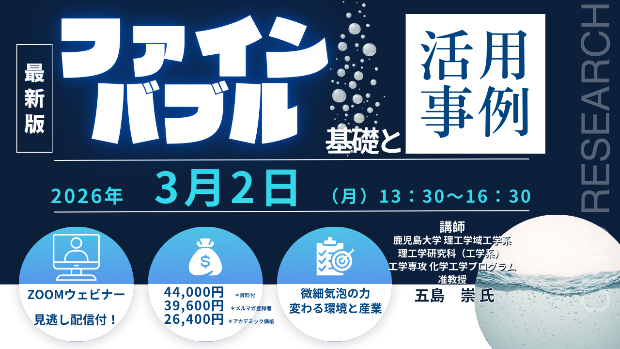 【ライブ配信/ZOOM】「ファインバブルの基礎と活用事例」セミナー開催!3月2日(月)主催:(株)シーエムシー・リサーチ