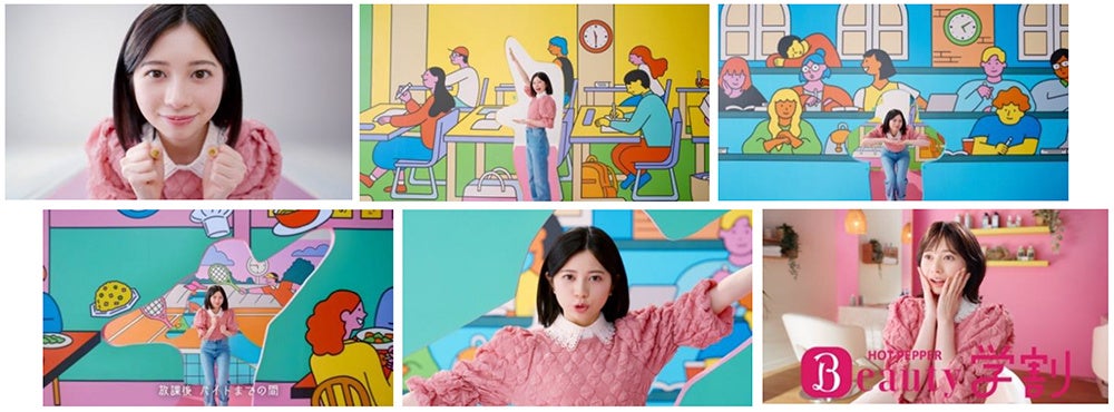 「予定にぴったりハマる篇」は、忙しそうにする桜田さんの前に突然、授業の様子が描かれたパネルが登場。桜田さんは、さまざまなポーズにくりぬかれたそのパネルにうまく体を当てはめて、まさに予定ぴたぴたならぬ“ぴたっ”!「2限と5限の間の空きコマ!」「サークルまでの時間!」と、声掛けしながらパネルをくぐり抜ける様子は、見ている人に『ホットペッパービューティー』なら予定に合わせて美容室に行けることを伝えます。これまでの『学割』シリーズのCMよりも、大きな声を出して声援を掛けたり、パネルにはまってみたり、今までになかったアクティブでテンション高めな桜田さんは必見です!