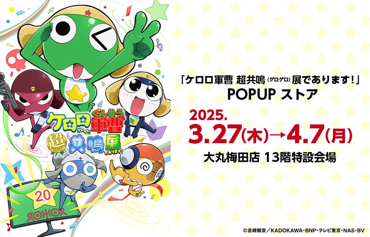 大丸梅田店では、3月27日(木)から4月7日(月)まで、13階特設会場にて、「ケロロ軍曹 超共鳴(ゲロゲロ) 展であります!」POPUP ストアを開催します。