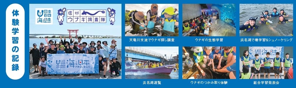 さまざまな海洋問題を自分の問題としてとらえ、行動につなげる海と日本プロジェクト in 長野が企画した小学生向け海洋学習体験プログラム「信州ウナギ調査隊」。今年の夏に2泊3日の日程で、飯田市、静岡県浜松市を舞台に開催いたしました。テーマの"ウナギ"を通じて、長野県と海のつながりや今、海で起きている変化を体験学習しました。調査隊は、天竜川支流でのウナギ探し調査、ウナギの生態学習、浜名湖での磯学習やシュノーケリング、ウナギのつかみ取り体験など、さまざまな目線で学習し、「美しく豊かな海を未来につなげたい。」というメッセージを考えました。
