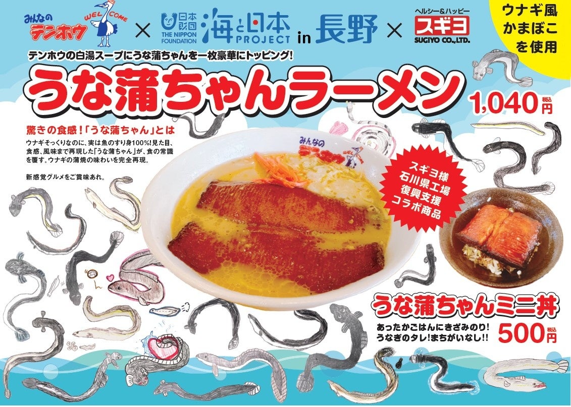信州ウナギ調査隊の子どもたちが未来の海を願って新メニューを考案 テンホウ「うな蒲ちゃんラーメン」「うな蒲ちゃんミニ丼」新発売