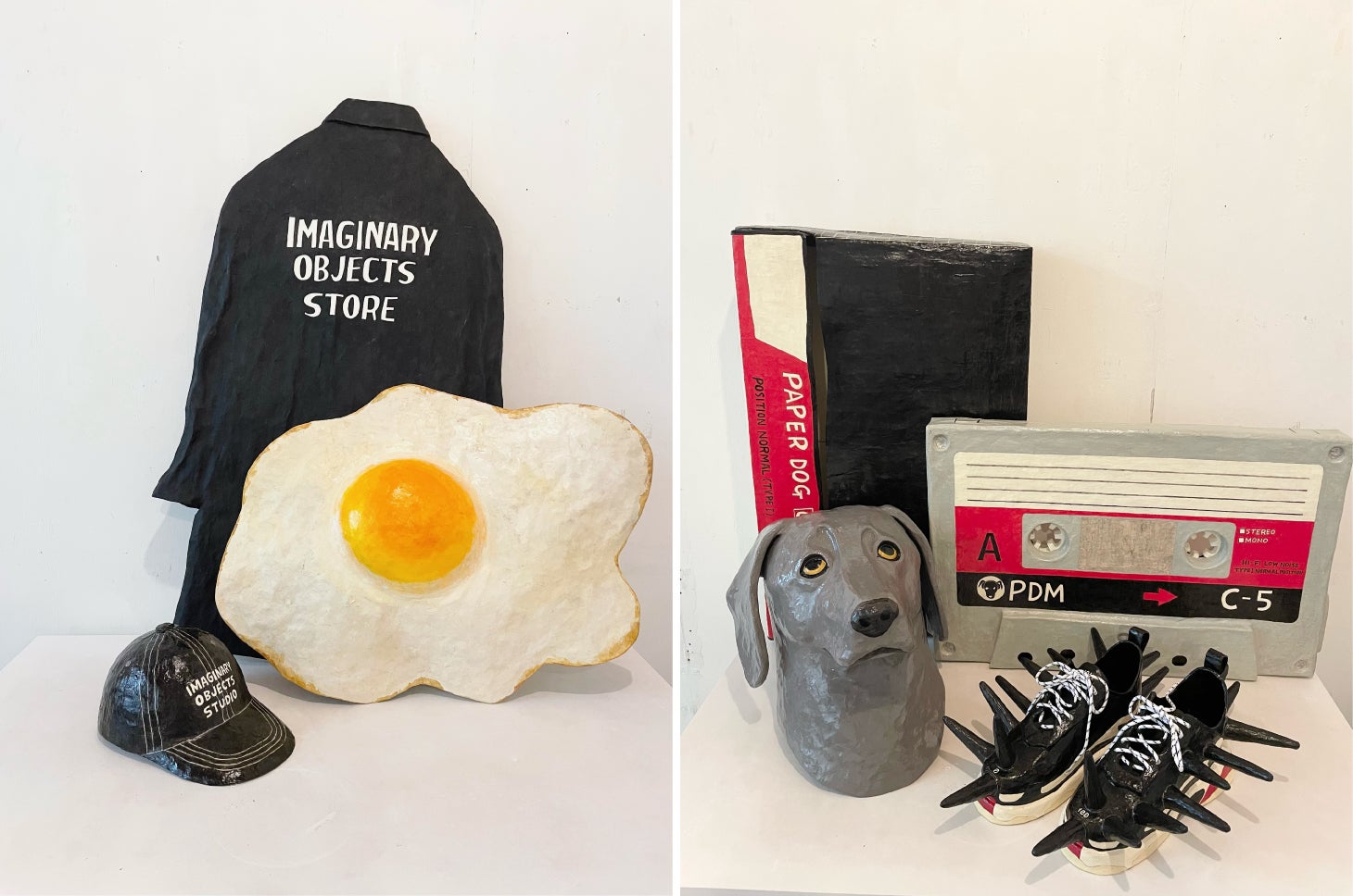 作品は、作成した型に紙を貼り重ね、乾燥後、型を抜くため、紙のみで出来ている。
