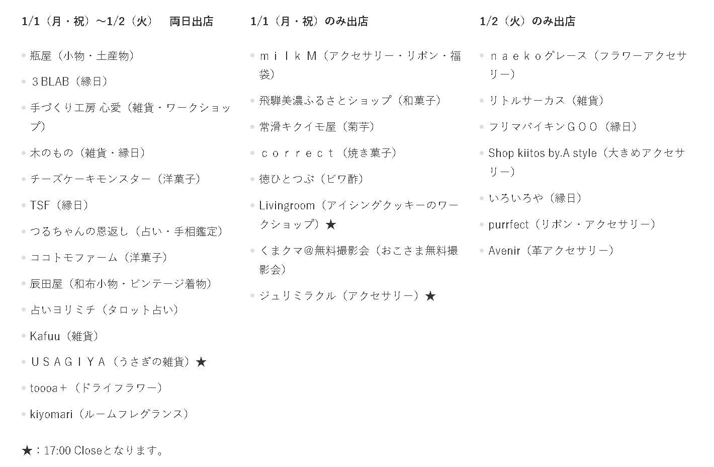 ※出店者リスト及びお取り扱い商品の内容は変更となる場合がございます。
