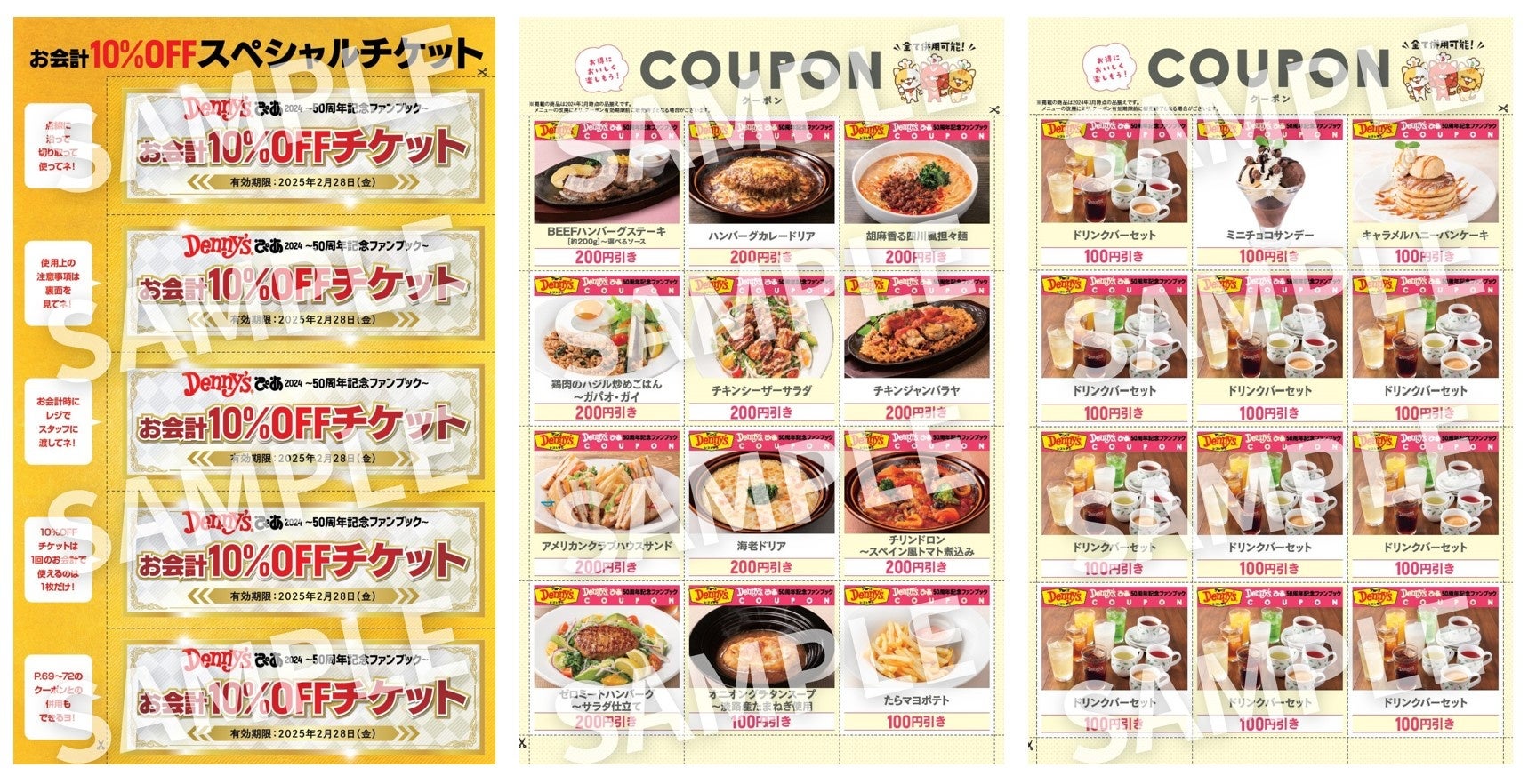 デニーズ50周年記念のファンブック「Denny'sぴあ 2024~50周年記念ファンブック~」総クーポン枚数は29枚!併用可能でお得においしく楽しもう!