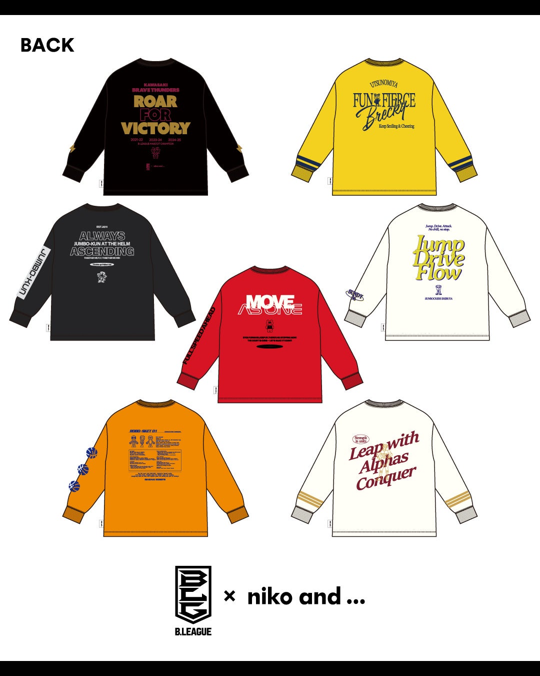 「niko and ...」は、ブランドが掲げる “uni9ue senses”(衣・食・住・遊・知・健・旅・音・LOCAL)の9つの要素を通して、ユニークなモノやコトを提案する企画を展開しています。昨年、「niko and ...」とB.LEAGUE 川崎ブレイブサンダースのコラボレーション商品を2回に渡りコラボレーションした経緯や、バスケットボールを通して感動や熱狂を提供し、観客を元気にするB.LEAGUEのビジョンやファン、地域コミュニティを大切にする想いに共感し、「niko and ...」との親和性が強いことから本企画が実現いたしました。