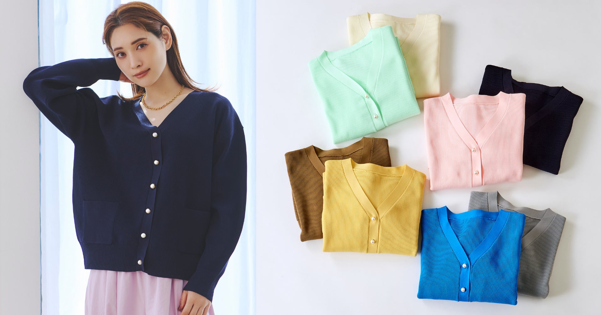 ●パールボタンリブカーディガン ¥7,700税込(FREE) 限定カラー含む全8色展開