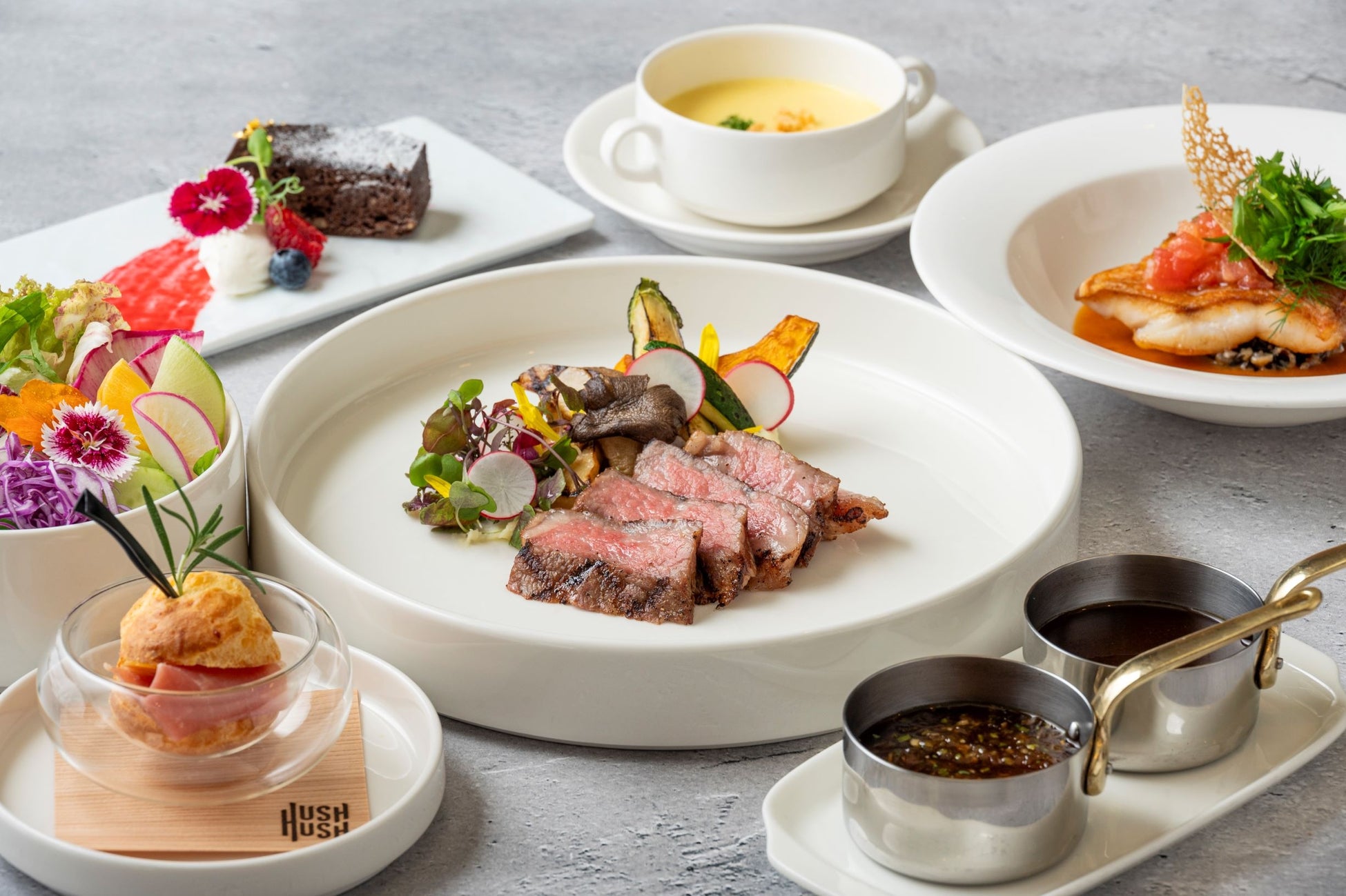 開業以来多くのファンの方に愛されているレストラン「ハシュハシュ」のランチにて、45周年のスペシャルセットをご用意いたしました。前菜やスープ、ボリュームたっぷりのサラダに加え、魚料理、肉料理、オリジナルデザートまでの充実のラインアップで、お腹も心も大満足の内容です。おひとりさまはもちろん、気の合う仲間やご家族での気軽なご会食にもおすすめです。
