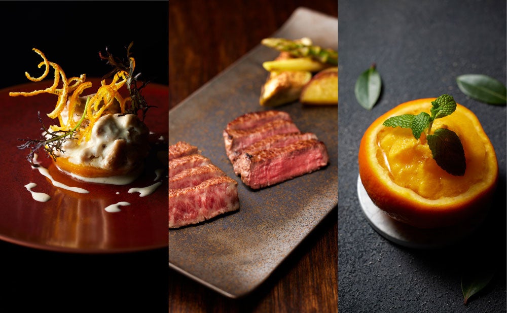 「鉄板焼 銀杏」では、一級河川や豊富な地下水など水資源に恵まれた熊本で育った野菜や、熊本県の名産品である南関あげを使用したメニューのほか、くまもと黒毛和牛プレミアム「和王」とミネラルが豊富でヘルシーなくまもとあか牛の食べ比べができる、贅沢なコースをご用意しました。カウンターから望む東京の夜景とともに、シェフが目の前で繰り広げる華麗なパフォーマンスと素材本来の旨みを味わう鉄板焼をお楽しみください。