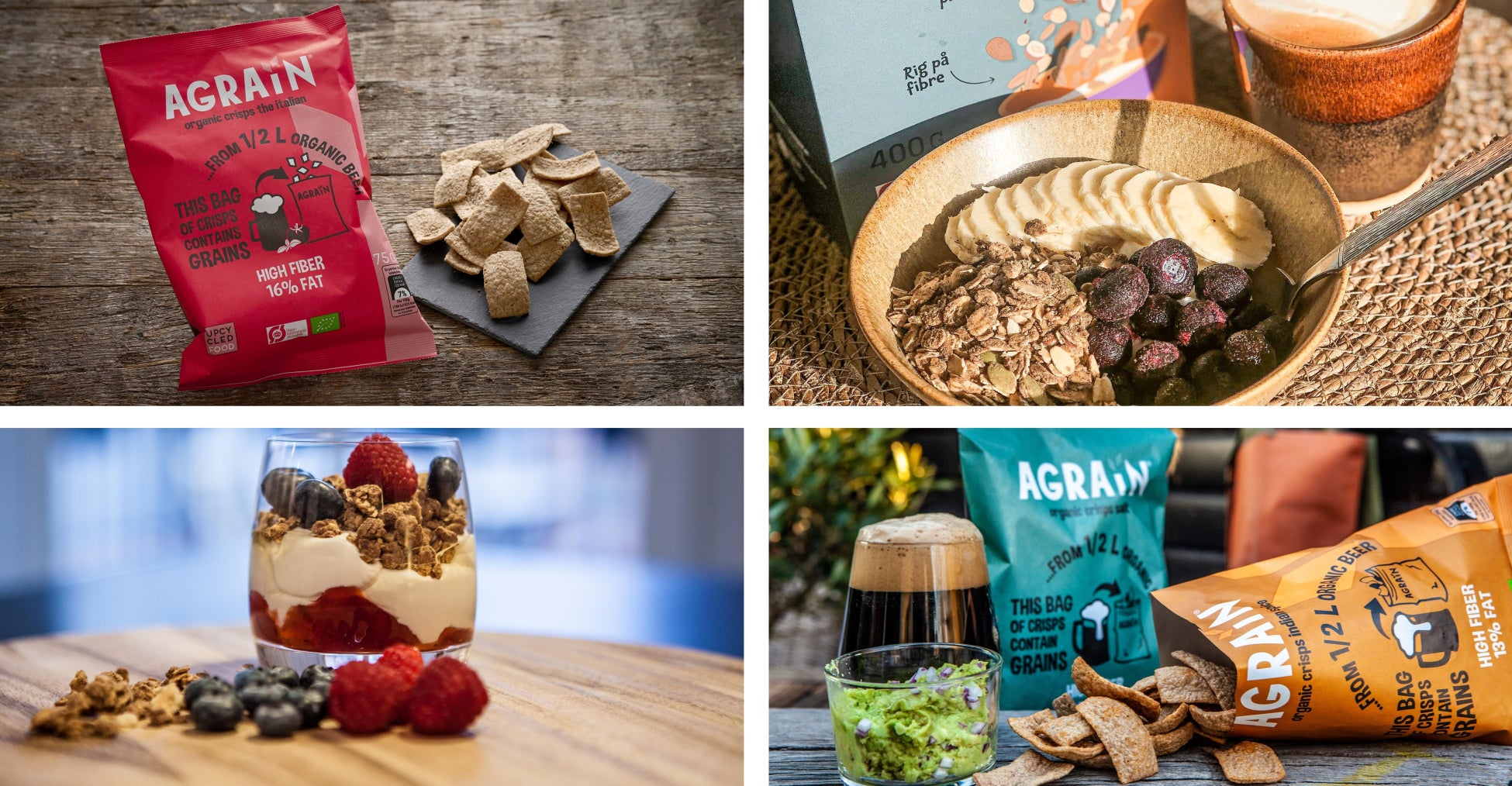 デンマーク発の「Agrain」(アグレイン)は、ビールやウイスキーの醸造所より廃棄される、副産物の「麦芽粕(使用済み穀物)」を使って、新たな付加価値を生むアップサイクルフードブランドです。