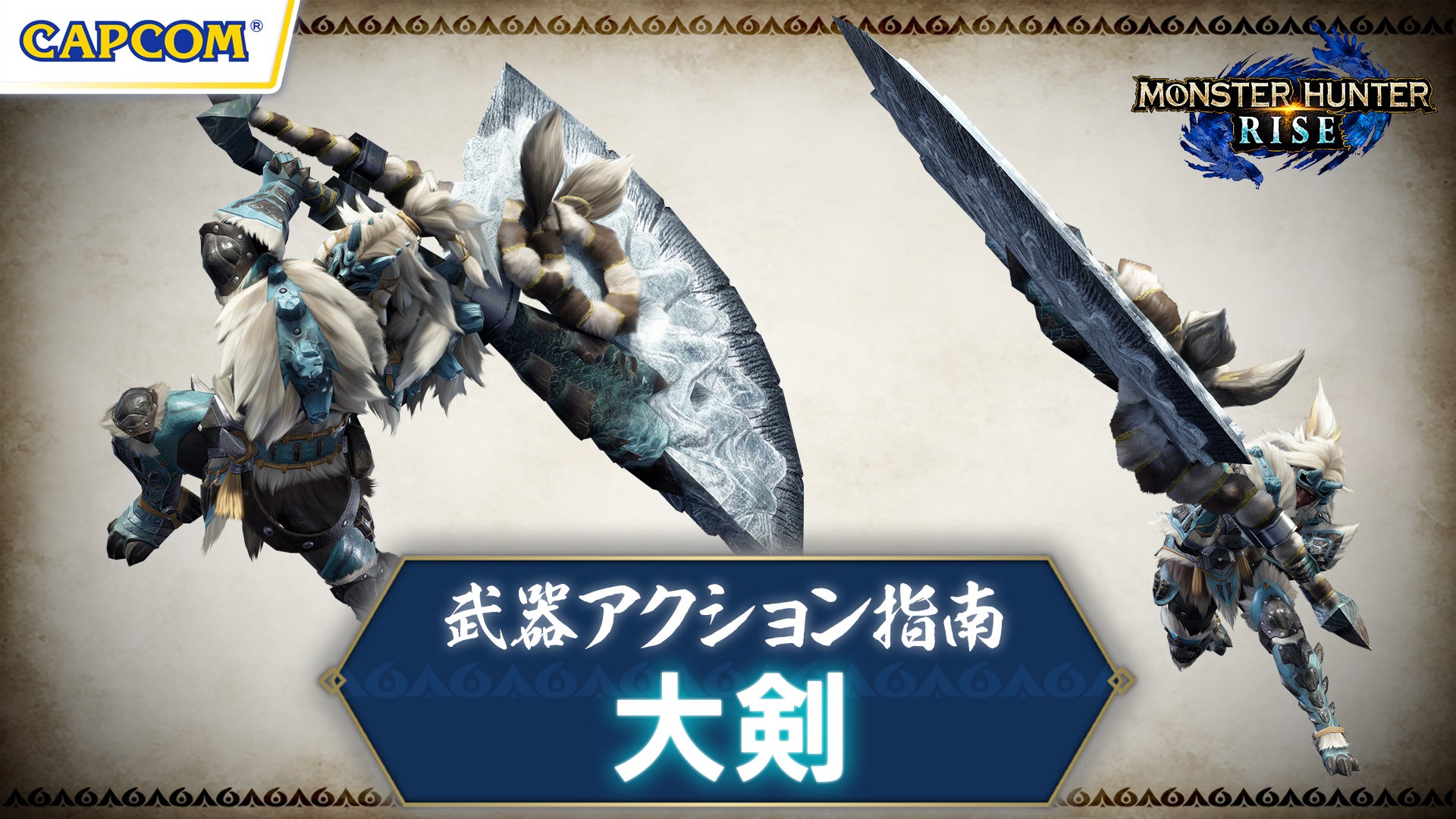 好評発売中の『モンスターハンターライズ』。武器の基本アクションから実践での⽴ち回り⽅を紹介する「武器アクション指南」第三弾をお届け! 今回は攻撃力の高い一撃が特徴の武器「大剣」をピックアップ! メインの武器として使用している方はもちろん、そうでない方も番組を観て「大剣」を装備して番組レギュラー陣と一緒にオンラインマルチプレイに参加しよう!