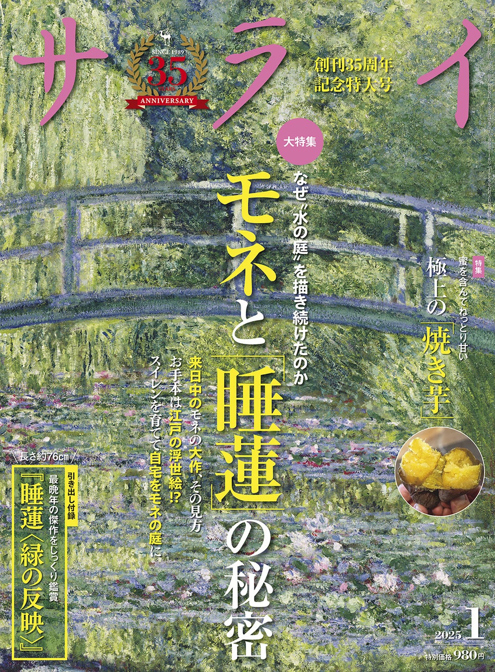 12月9日発売の『サライ』2025年1月号では、大特集「モネと『睡蓮』の秘密」として、クロード・モネの画業と生涯に迫ります。