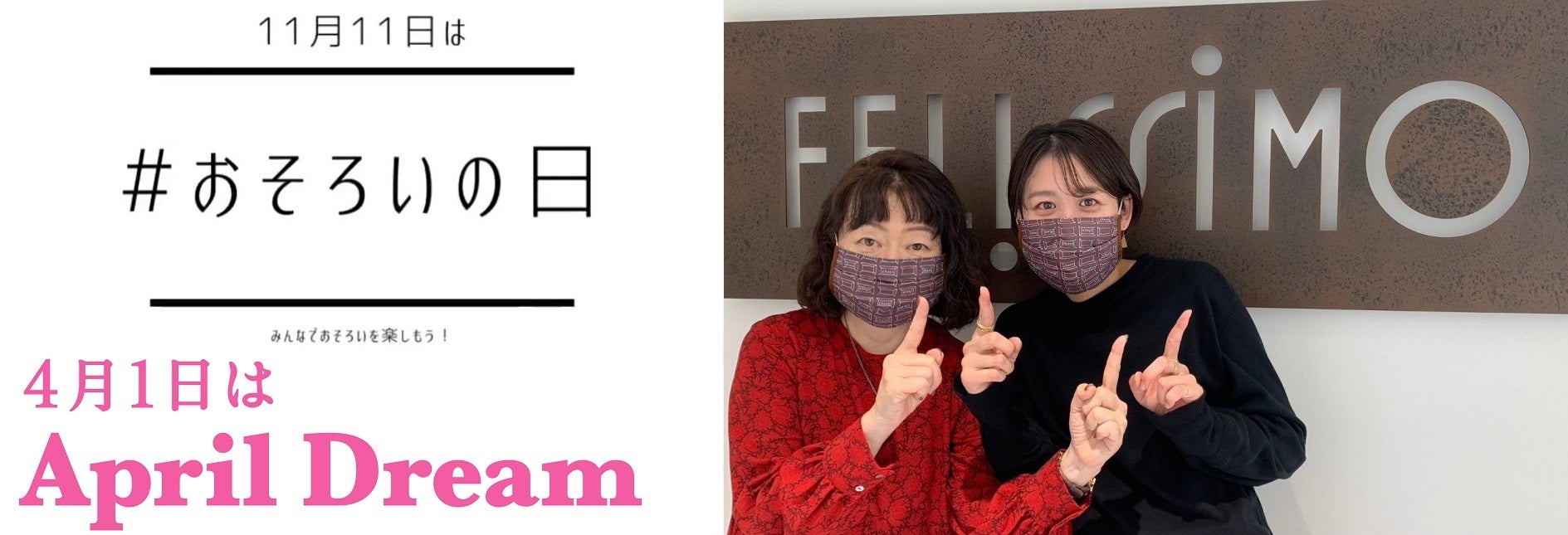 「ともにしあわせになるしあわせ」をコアバリューに、しあわせ社会の創造を目指すフェリシモは、“おそろい”を楽しむことで街中に笑顔の花を咲かせ、世の中をHAPPYにする「#おそろいの日文化推進準備委員会」を4月4日に発足します。「おそろいの日」は一般社団法人・日本記念日協会により認定・登録された11月11日の記念日です。「11」と「11」が「おそろい」であることから、親子や兄弟・姉妹、友だちのコミュニケーションを広げ、一緒に楽しめる文化を創ることで世界がもっとHAPPYになってほしいとの想いが込められています。おそろいの日文化推進準備委員会は、その担い手となるすべての人や企業・団体とともに「おそろいの日」を楽しんで、しあわせが2倍以上に膨らむ夢の1日、Real Dreamを目指します。そのしあわせの実現はともにおそろいを楽しむだけです。「#おそろいの日」のイベント企画、おそろい商品の開発など、フェリシモの枠組みを超えて、2023年のおそろいの日に向け始動します。当社は、4月1日を夢を発信する日にしようとするApril Dreamに賛同しています。このプレスリリースは「フェリシモ」の夢です。