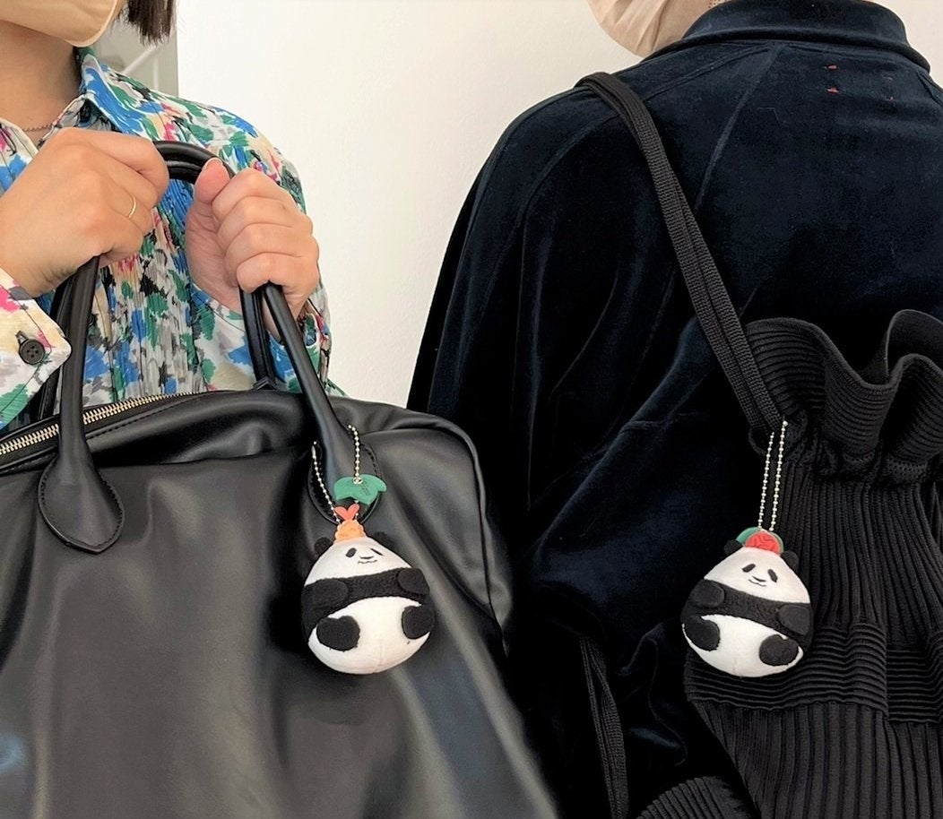 「タンタンのおにぎりパンダ スクイーズマスコット」をおそろいでバッグにつけて楽しんだYOU+MORE!。全4種類あるのでグループで“おそろい”が楽しめます。おそろいはふたりとは限りません。アイテムは服に限りません。自由な発想でおそろいは広げられます。
