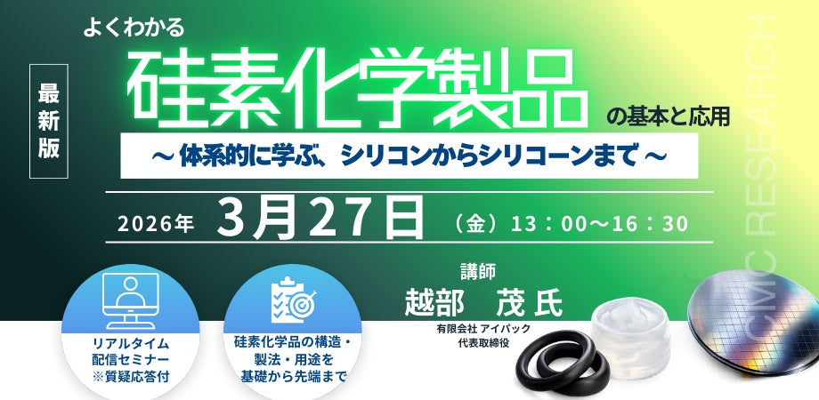 【ライブ配信/ZOOM】「よくわかる「硅素化学製品」の基本と応用 ~ 体系的に学ぶ、シリコンからシリコーンまで ~」セミナー開催!3月27日(金)主催:(株)シーエムシー・リサーチ
