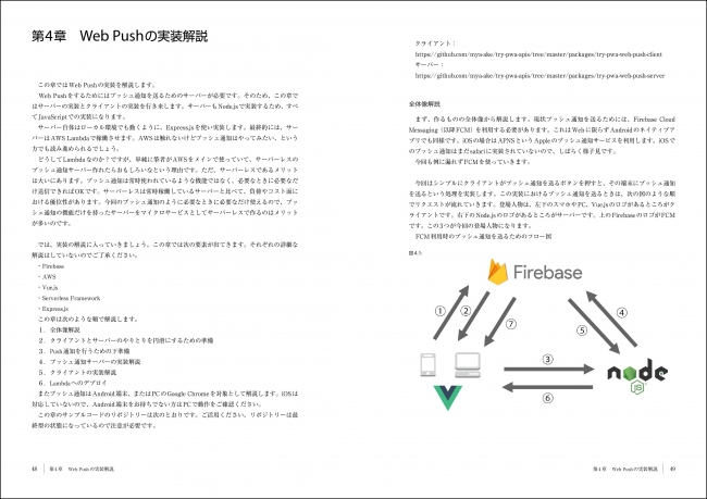 Firebase Hostingを使った配信やFirebaseを使ったWeb Pushの実装、AWS Lambdaで実装するServerless Push Serverなどについて解説しています。