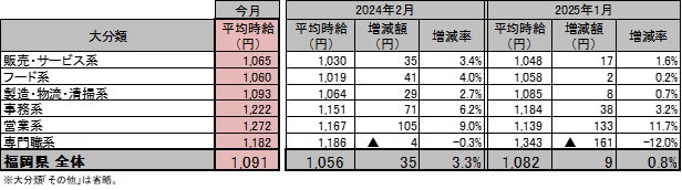 [福岡県版]2025年2月度 アルバイト・パート募集時平均時給調査