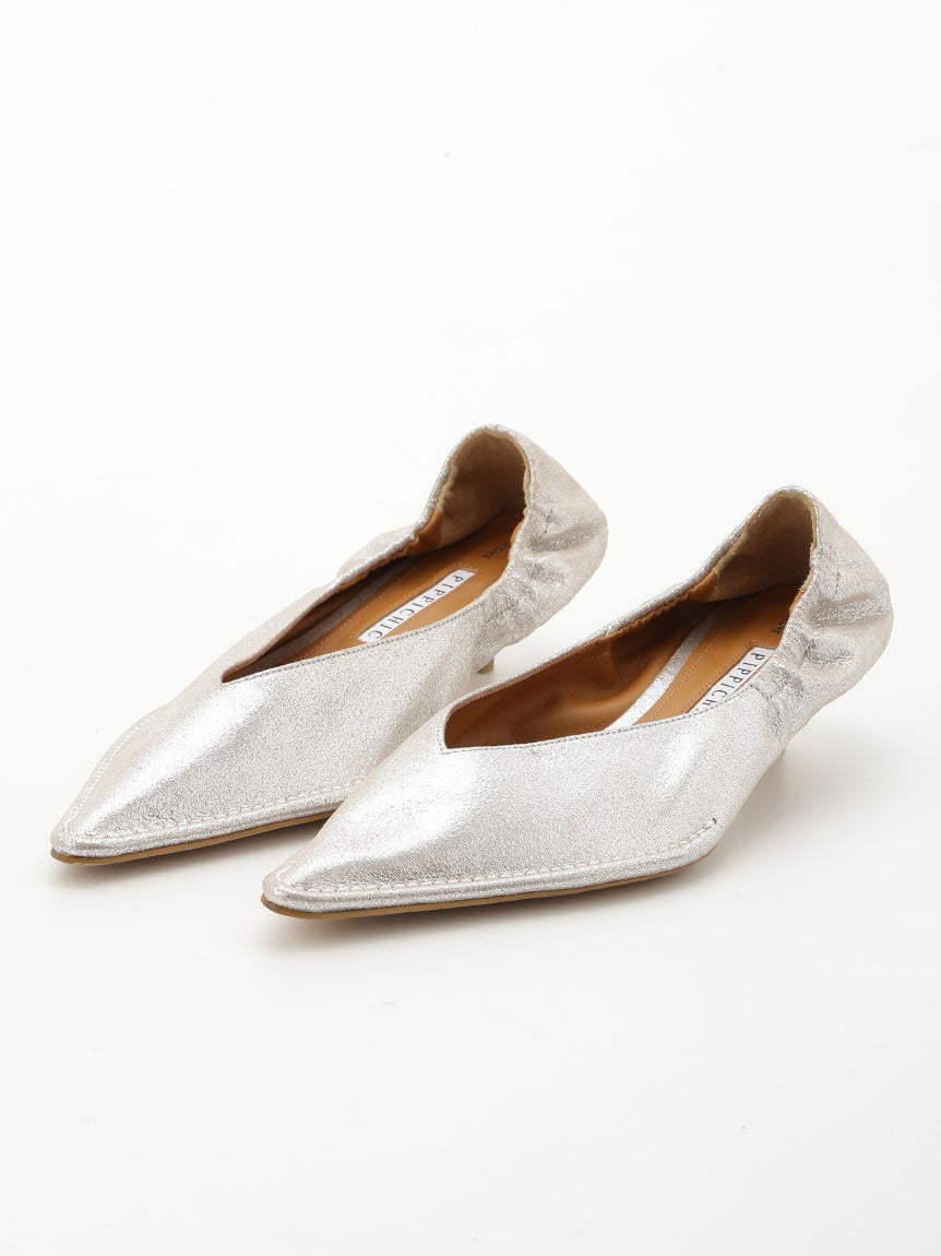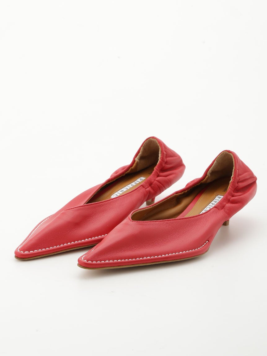 シルバーには山羊革、レッドには羊革を使用した柔らかな質感のポインテッドトゥパンプス。