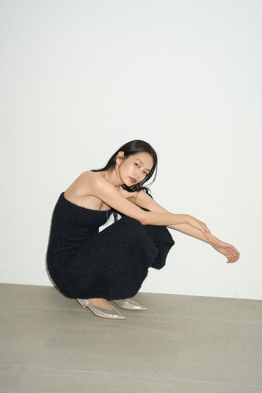 ホリデーシーズンの装いをクラスアップしてくれる華やかさのあるポインテッドトゥのパンプスと、