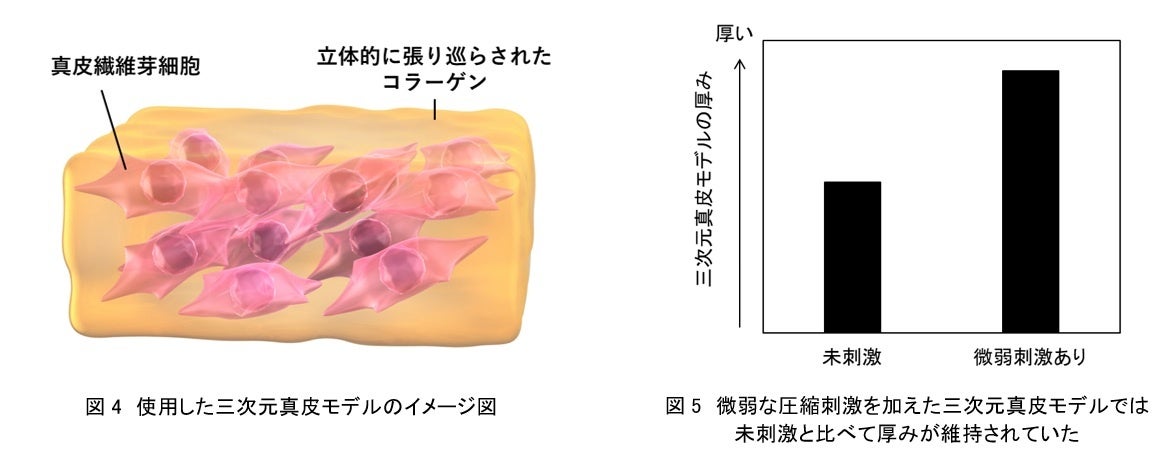 《微弱な圧縮刺激の継続作用により真皮モデルの厚みが向上》
