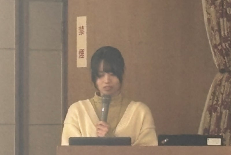 また、大学院教育学研究科教育科学専攻1年の白銀美里さんは「中学生による地域住民への防災認知向上プロジェクト」の成果を発表しました。中学生とともに防災すごろくを作成し、地域の地形的特徴や発生しやすい災害、避難後の生活について学ぶ機会を提供。作成したすごろくは公民館で地域住民に披露され、子どもが地域の大人に防災・減災の知識を伝えるという新たな防災認知の形を築きました。