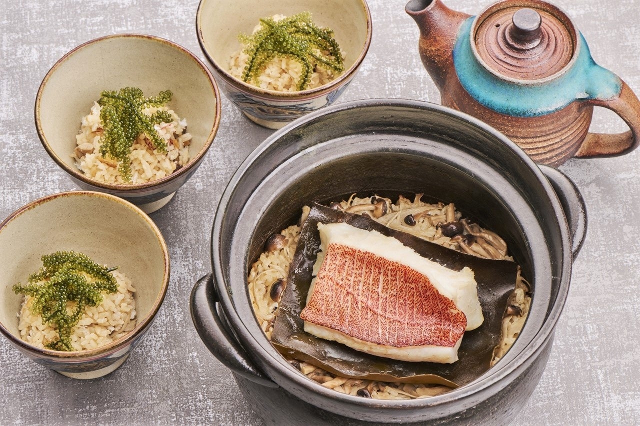 「うとぅいむち」とは「おもてなし」のことをいい、人と人との縁を「お取り持つ」という意味があります。ひとつの釜からご飯を分け合い家族の絆を深めるという意味を込め、沖縄三大高級魚のひとつ「赤仁ミーバイ(スジアラ)の魚飯」をご用意しました。お好みで鰹出汁をかけて召し上がってください。