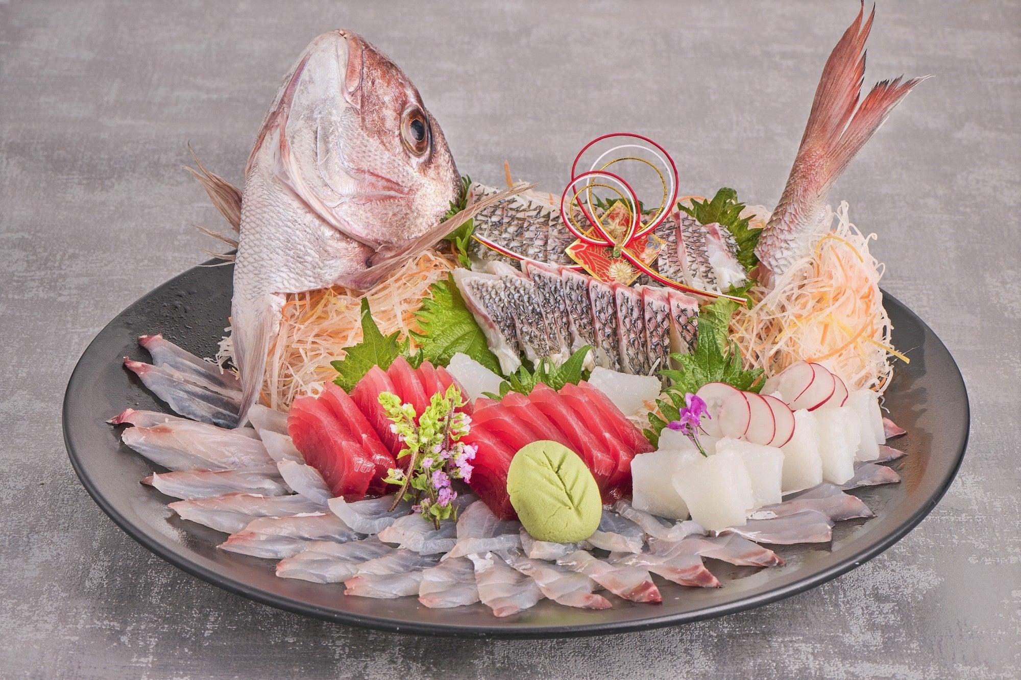 「かりゆし」は現在では「めでたい」や「縁起がよい」といった意味を持ちますが、語源は「軽石」と言われ、水の中でも沈まないことから船出の安全を祈願する言葉として使われていました。これからの新たな門出を祝う意味を込め、縁起のよい真鯛を使った姿造りと鮪、セイイカの造りをご用意しました。