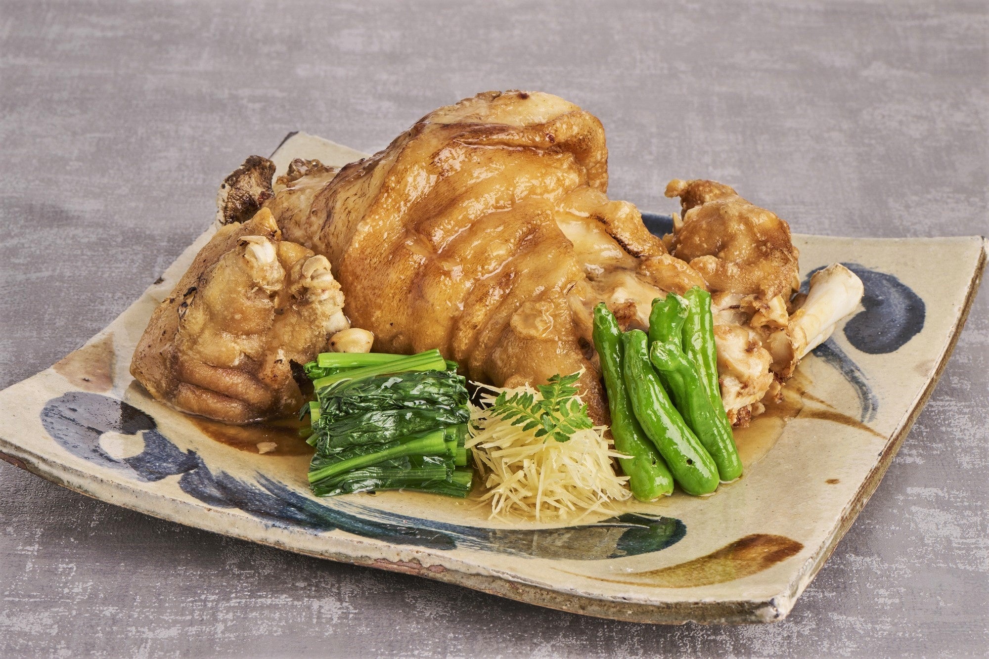 沖縄の郷土料理のひとつでもある「てびち」の語源は「うてぃびち」で、お祝いのときにつくる肉や豆腐、野菜を使った煮込み料理のことです。「くわっちー」料理として、じっくり煮込んだとろとろの豚足を油で揚げたあと、シークヮーサー風味の甘辛いタレに絡めて提供します。表面はカリっと香ばしく中はとろっとジューシーに仕上がっています。