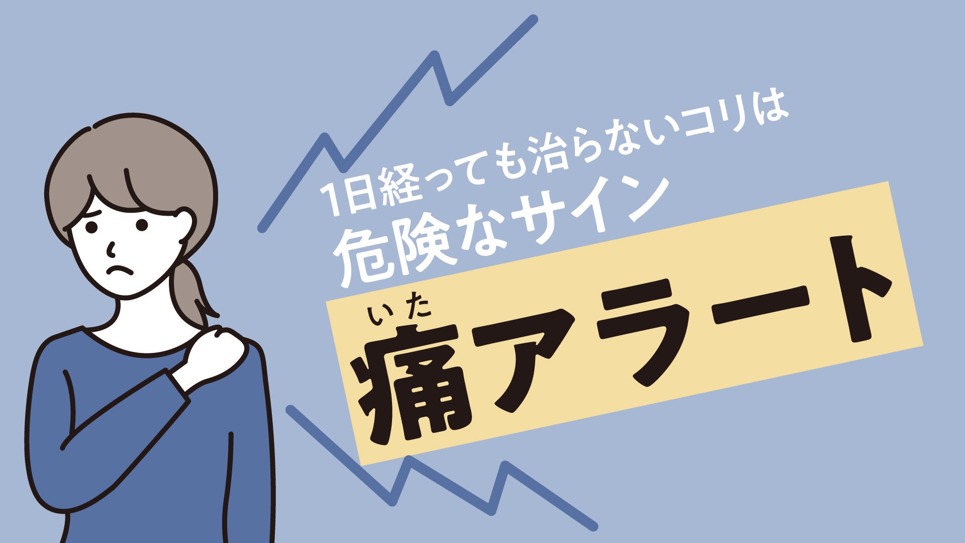 一般社団法人 日本疲労学会 理事長を務める渡辺 恭良教授(以下、渡辺教授)は、「コリが1日経っても治らない時点で身体は異常であり、ケアすべきです」と話し、身体の痛みの前兆として「痛(いた)アラート」の存在を軽視すべきではないとしています。