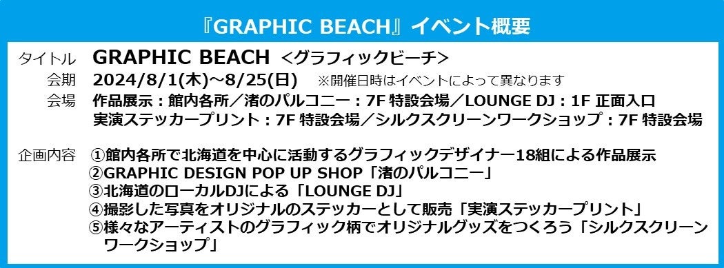 札幌PARCOは、8/1(木)~25(日)の計25日間、北海道を中心に活動するグラフィックデザイナーによる作品展『GRAPHIC BEACH』を開催いたします!