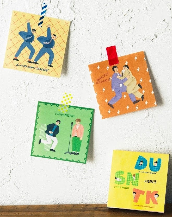 ロングコートダディ、マユリカ、ニッポンの社長のブロックメモ。賞レースで披露したあのネタや、彼らの漫才やコントのモチーフ、ファンならわかる「あのシーン」をギュギュっと詰め込みました。賞レースの爆笑ネタなどでお互いの交流のきっかけを作るコミュニケーションアイテムです。ちょっとしたメモにはもちろん、プレゼントのラッピング、チケット交換時のお礼など、使い道はいろいろ。渡す時にさりげなくファンをアピールできるので、相手もお笑い好きだったら、きっと新しい交流が生まれます。