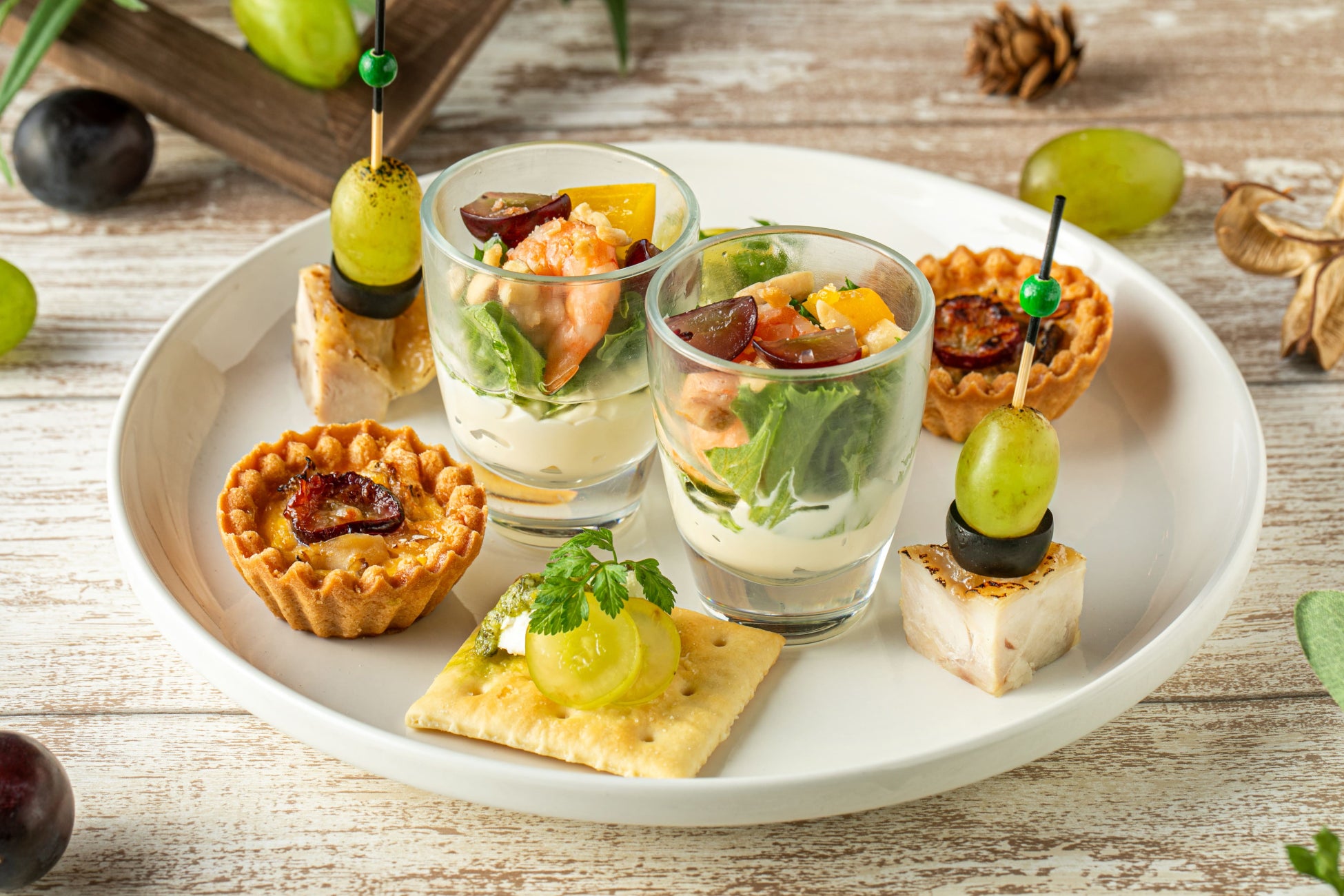 巨峰とマイタケのキッシュ /マスカット バジルカナッペ