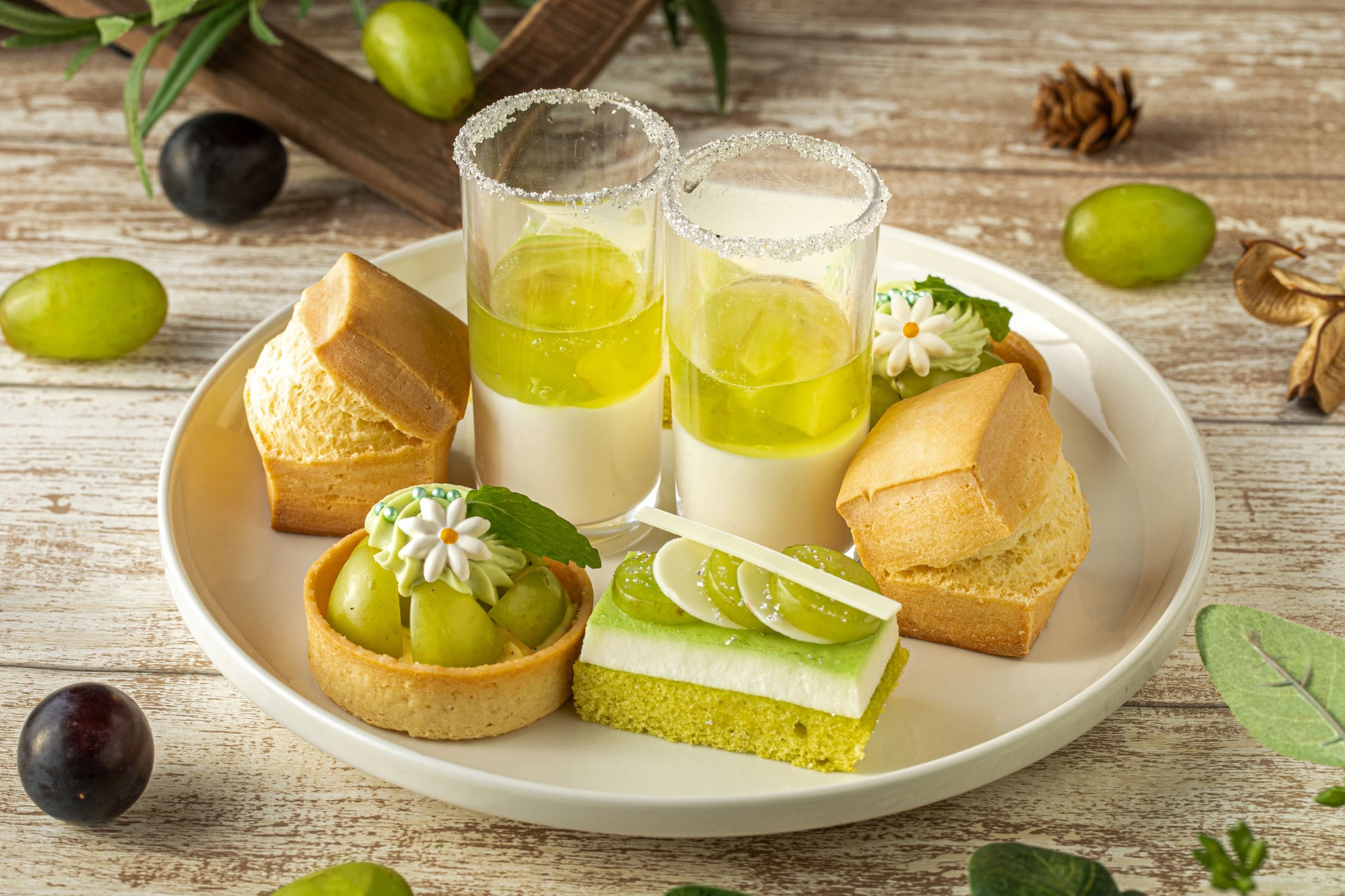 パンナコッタとマスカットのジュレ / マスカットのタルト /レモンとシャインマスカットのケーキ /プレーンスコーン