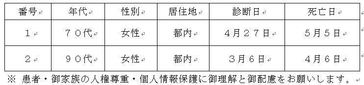 都内で新型コロナウイルスに感染した方が死亡されましたのでお知らせします。お亡くなりになった方のご冥福をお祈り申し上げます。