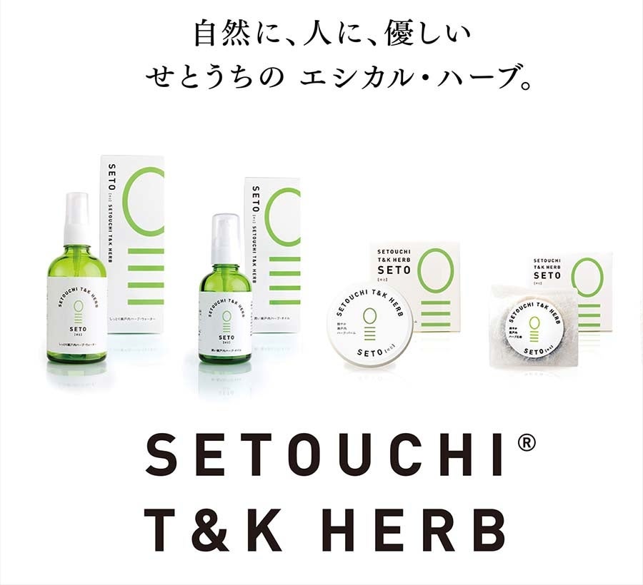 「せとうちT&Kハーブ」は、自然に近い形で育てた素材を使い、自然環境を守りながら、「地方の豊かな自然・ハーブ(草木)を使った地方・ニッポンを応援する」ブランドです。日米のサステナブルなビューティ&ウェルネスを選出するアワードで評価されています。肌を整えるエシカル・ハーブコスメ、二十四節気の暦に合わせ国産オイルベースのブレンドエッセンシャルオイルや新感覚のアロマクラフト、身体を内側から整えるハーブティなど、ブランドこだわりの国産ハーブをお試しいただけます。