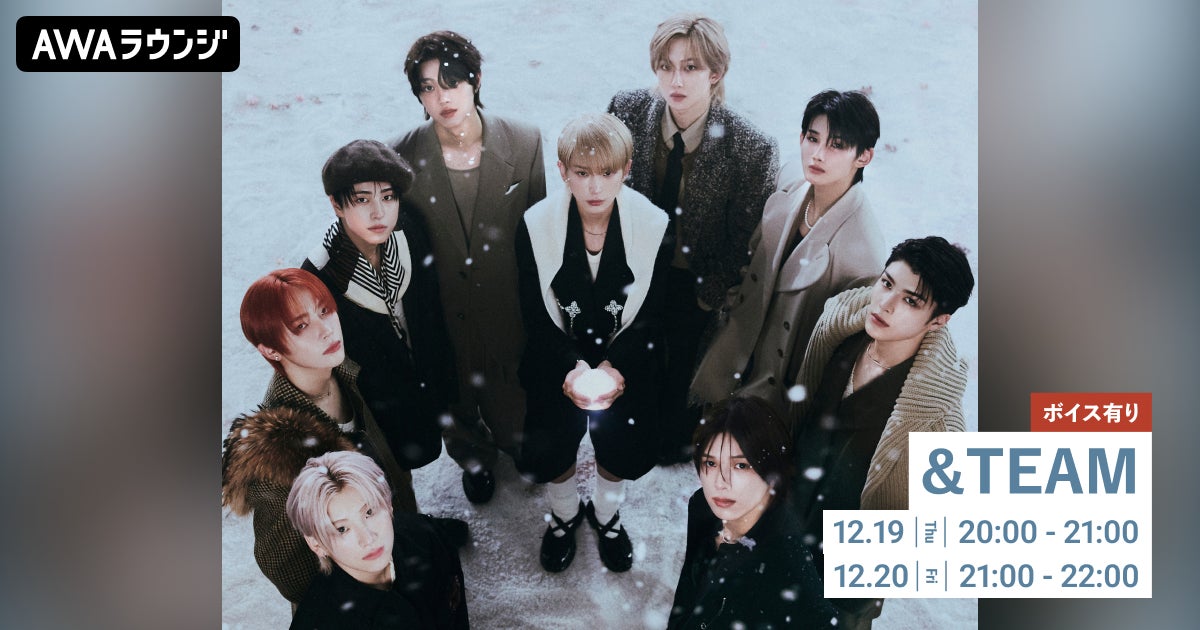 AWA株式会社(本社:東京都港区、代表取締役CEO:冨樫晃己)が運営する、サブスクリプション型(定額制)音楽ストリーミングサービス「AWA(アワ)」は、2024年12月19日(木) 20:00~21:00と2024年12月20日(金) 21:00~22:00の2日程に渡り、無料で誰でも参加できるオンライン空間「ラウンジ」で、&TEAM特集のイベントを開催いたします。
